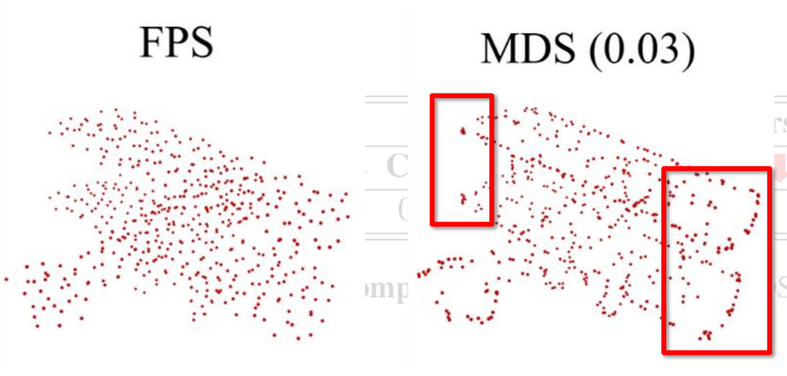 Despite the lower quantitative scores, we observed a significant qualitative improvement. The point clouds completed using MDS sampling showed a clear tendency to have fewer outliers and cleaner, more defined edges. This suggests that while edge-focused sampling may hurt general metrics, it helps in generating more structurally coherent shapes.